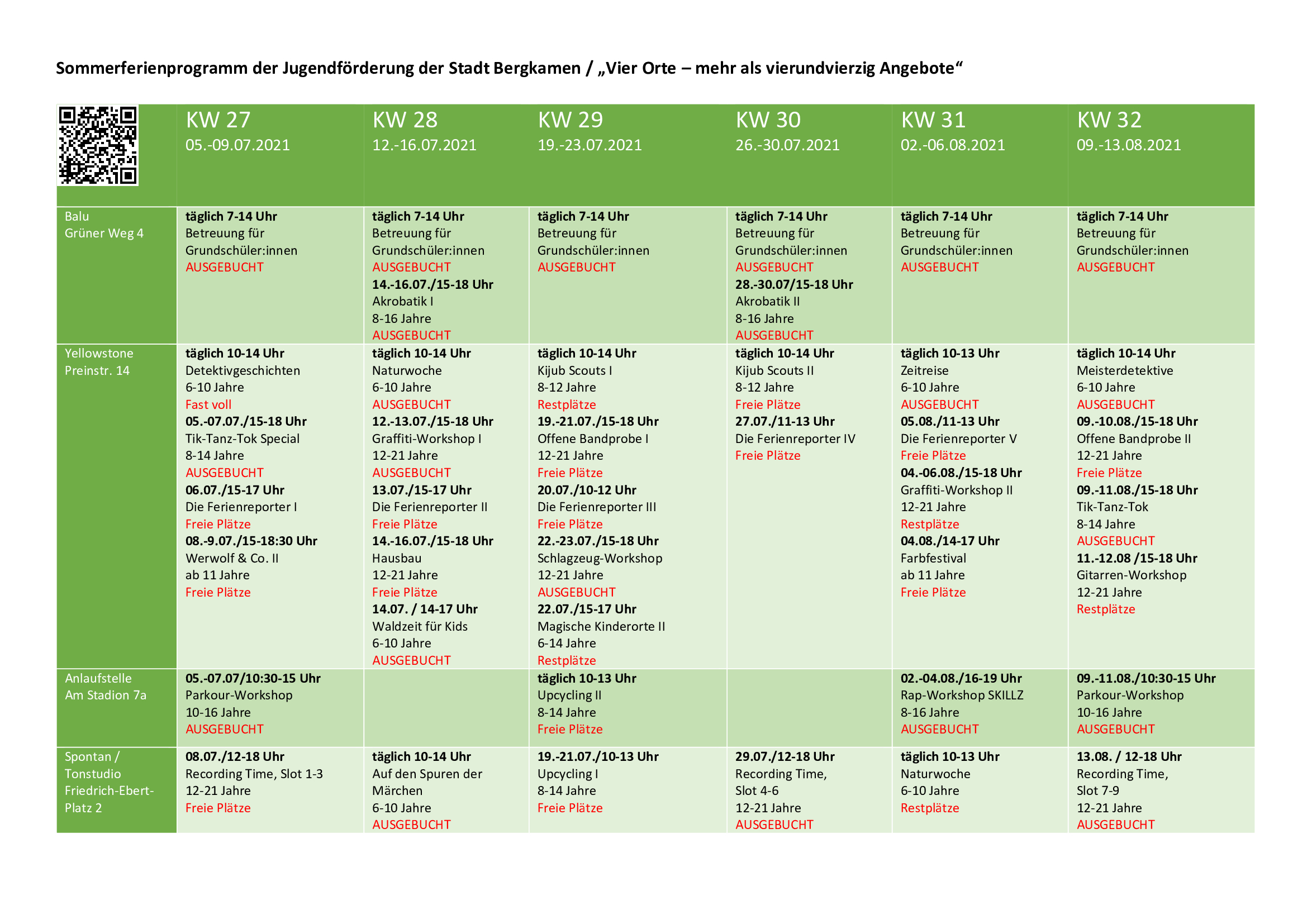 Gemäß der aktuellen Corona-Schutzverordnung ist ab sofort die Masken- und Testpflicht in den Angeboten der Bergkamener Kinder- und Jugendförderung aufgehoben. (...)